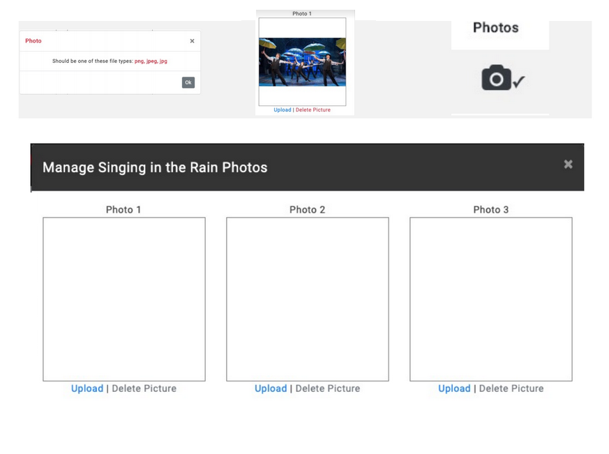 - Photos must be one of the following types: PNG, JPEG, JPG.